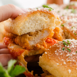 - Hawaiian sweet rolls: Soft, slightly sweet rolls balance the savory chicken and marinara. Keep them connected when slicing so they’re easier to assemble.