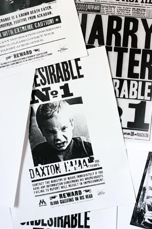 Printed “Wanted” posters or Harry Potter quotes